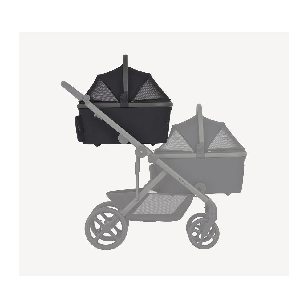 El capazo incluye una pieza acolchada y extraíble en la base, para ofrecer mayor comodidad durante el transporte.